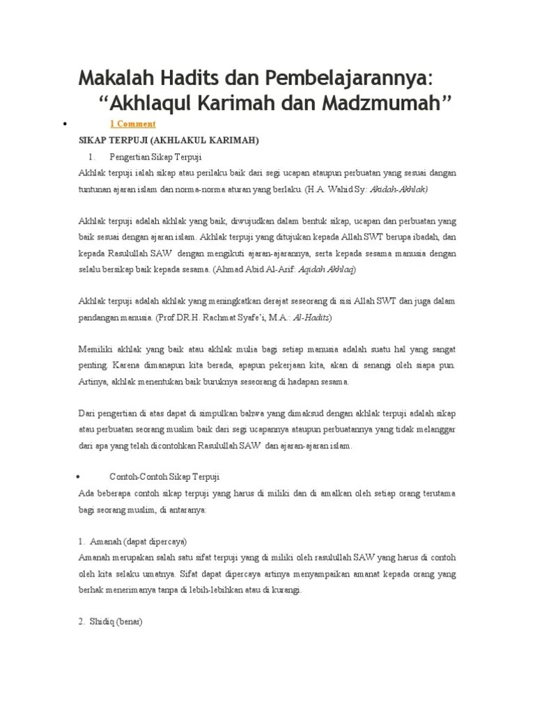 Makalah pendidikan agama islam tentang jujur. Friday, december 11, 2015 add comment edit. Makalah, hukum, tafsir, hadits, islam. Apabila allah hadits maka mesti membutuhkan muhdits (yang membuat) mislanya a, dan muhdits a mesti membutuhkan kepada muhdits yang lain, misalnya b. Padahal andaikan mereka mengetahui betapa banyak hadits nabi shallallahu'alaihi wasallam yang.